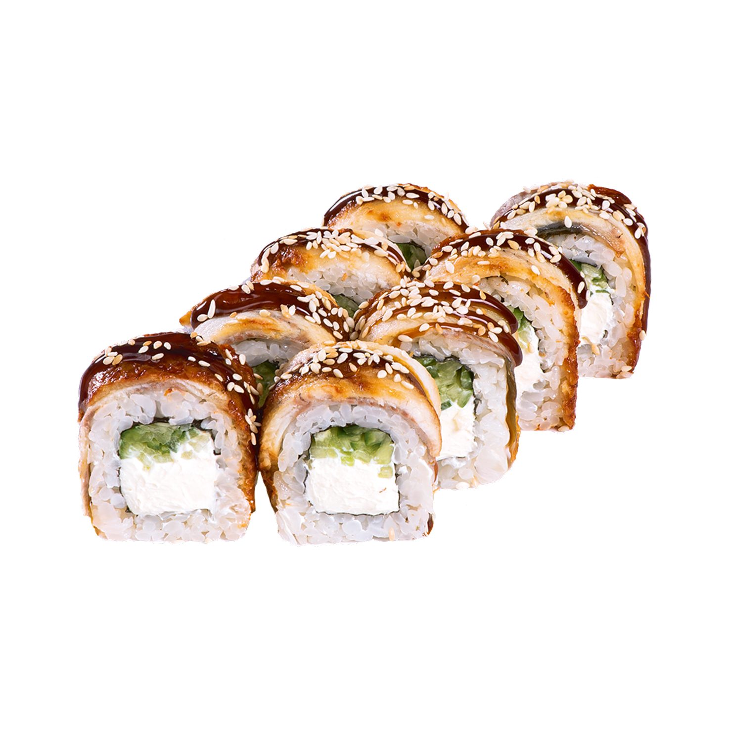 Угорь, огурец, сливочный сыр, Унаги соус, кунжут